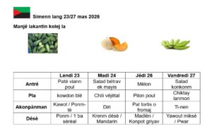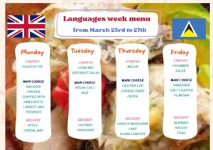 Dans le cadre de la semaine des langues, découvrez le menu de la demi-pension en anglais, en espagnol et en créole.