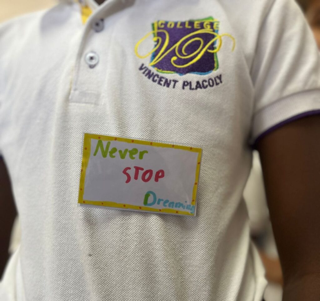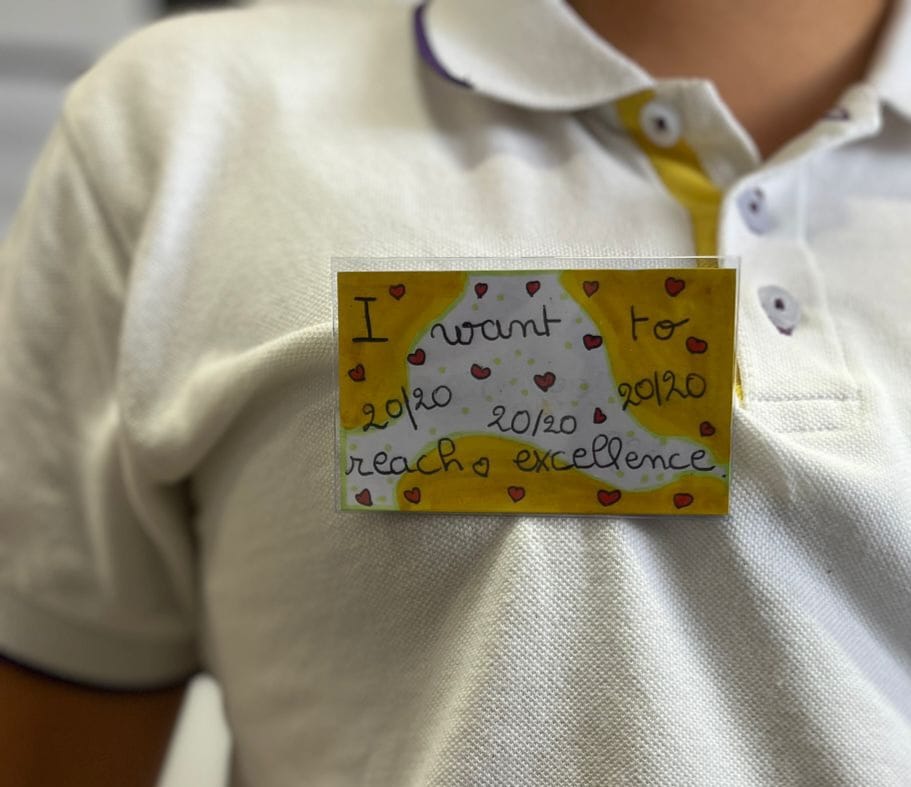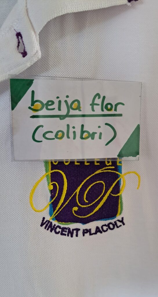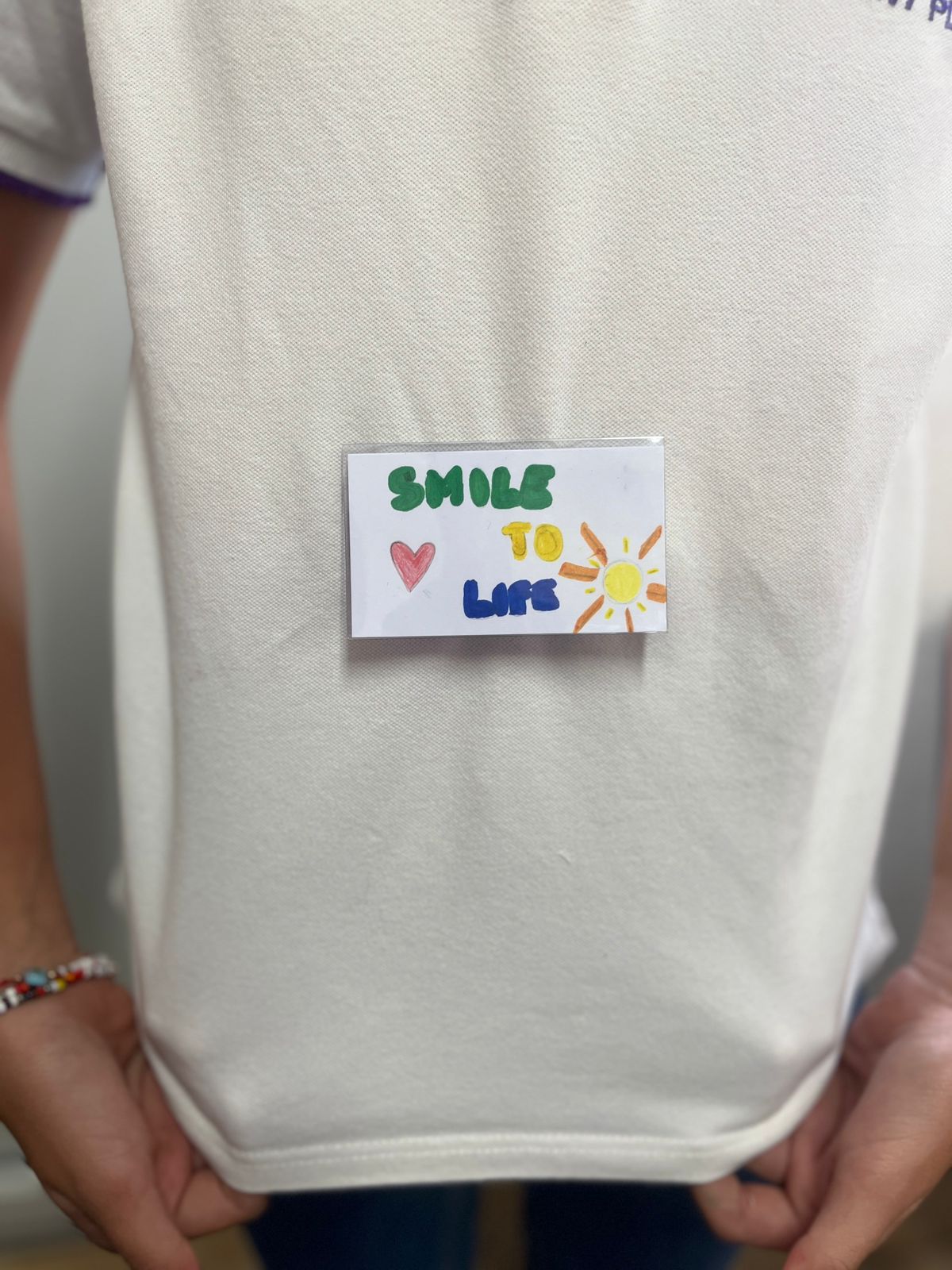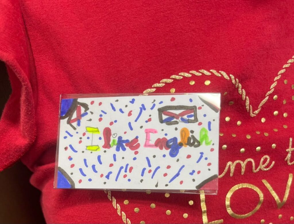 L’action « Porte ton mot » invitait les élèves à porter un badge dans lequel ils devaient glisser le mot, l’expression ou la phrase de leur choix dans la langue étrangère cible du jour.