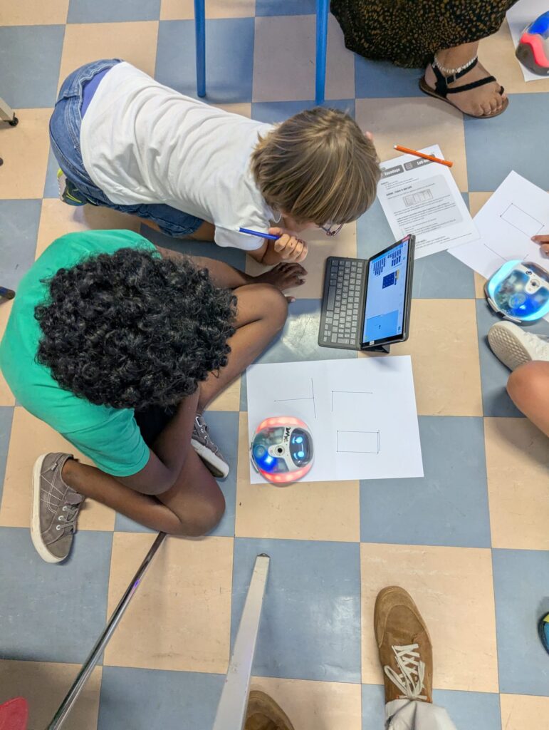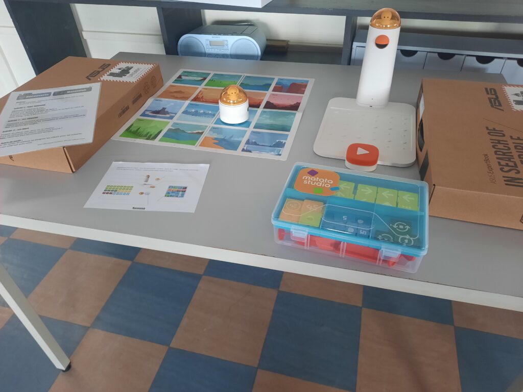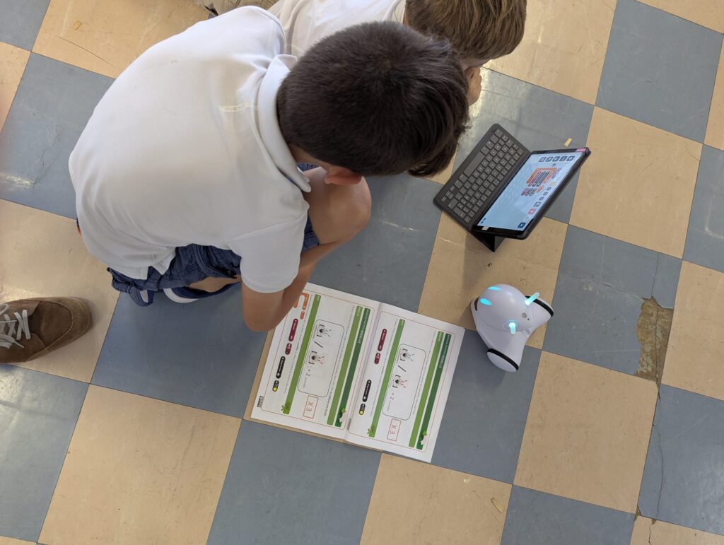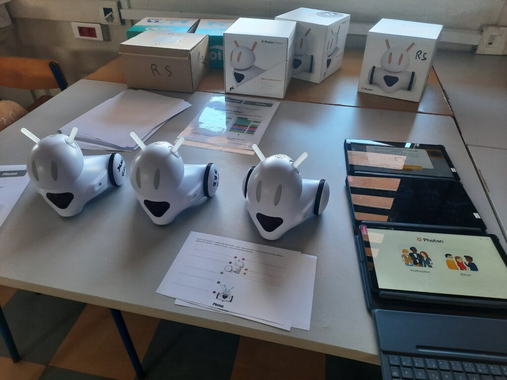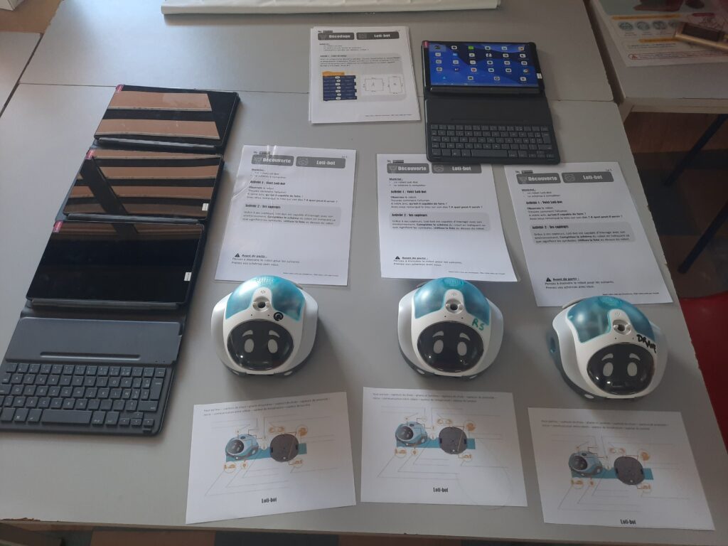 Sur deux séances d’une heure, les élèves ont découvert les 3 robots et exploré les deux premiers paliers du Savoir-Coder, en réalisant des algorithmes simples et en relevant des défis collaboratifs à partir du dossier pédagogique complet du groupe numérique 91 et du livret défis Photon.
