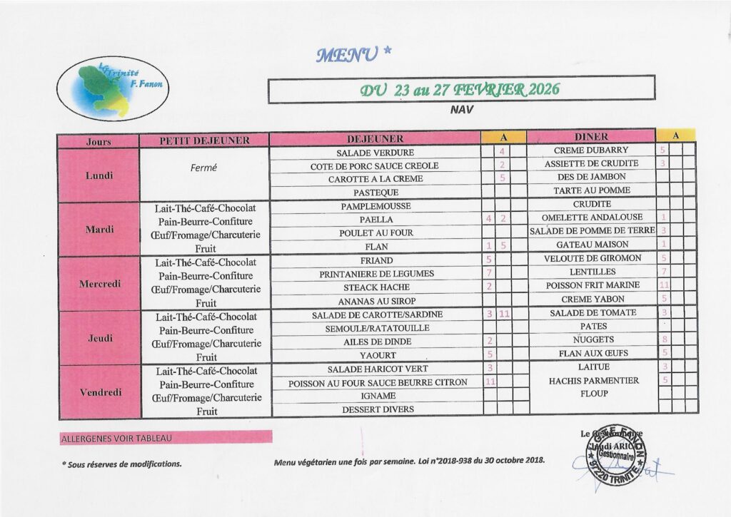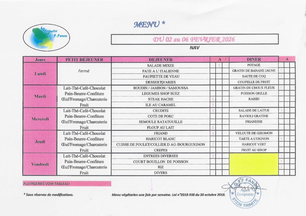 Le menu de la semaine