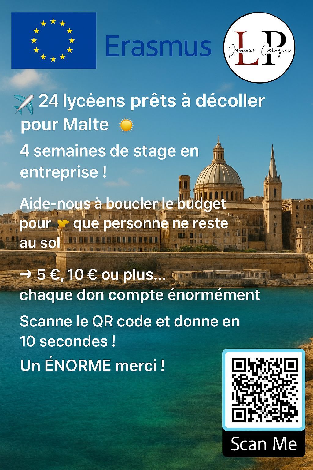 Pour concrétiser leur voyage, 24 élèves de la section DNL Vente-Accueil organisent plusieurs actions afin récolter des fond pour concrétiser leur voyage de stage à MALTE.