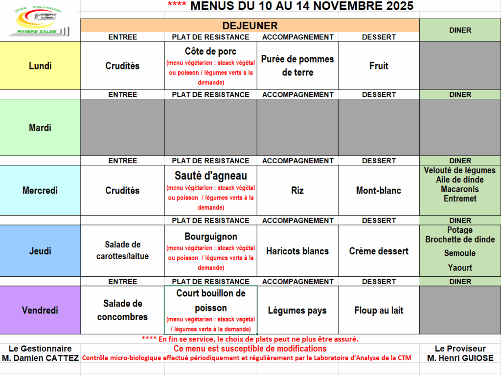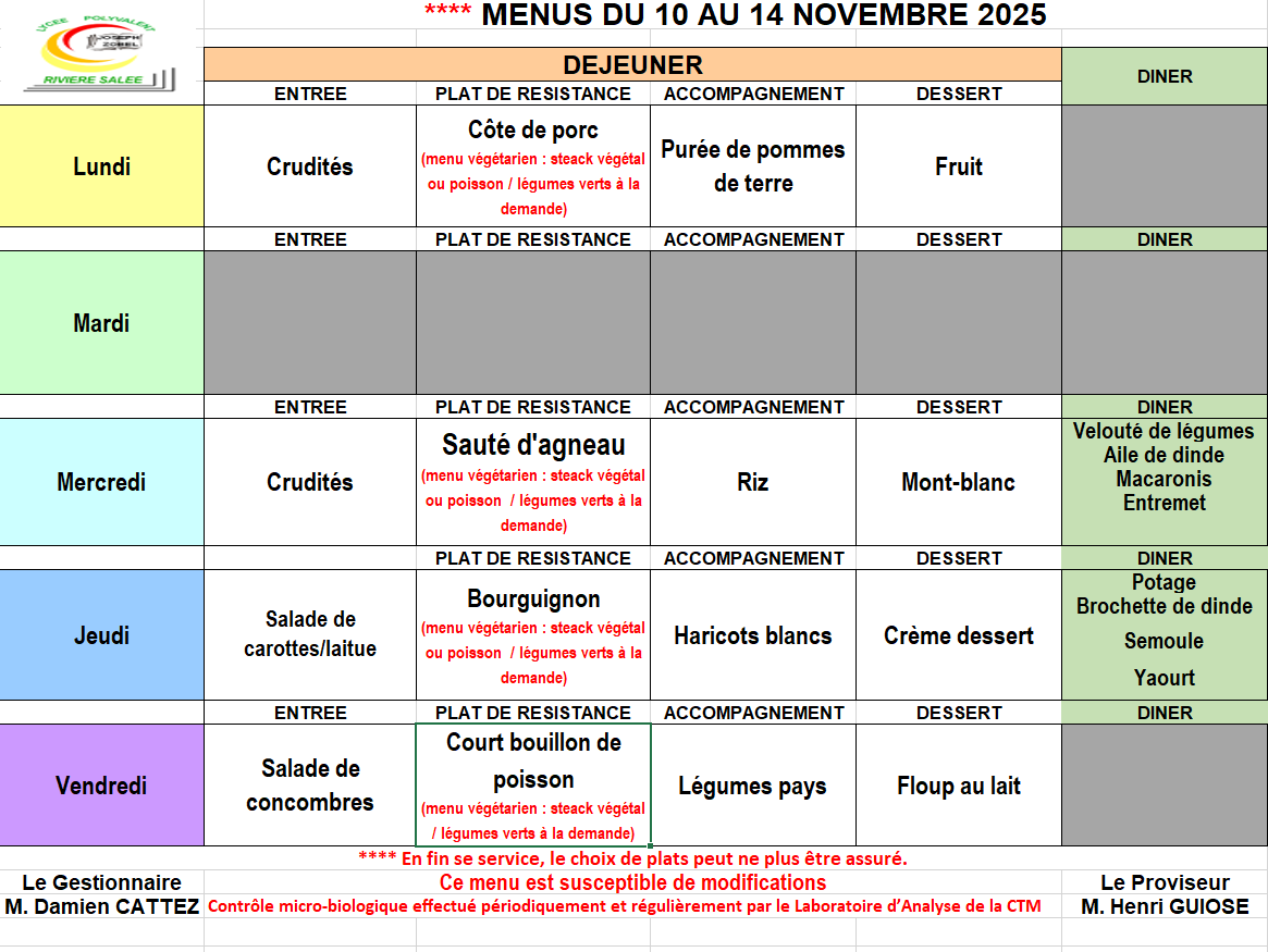 | CHEQUE : « à l’ordre de l’Agent comptable du LPO Rivière-Salée » / CARTE BLEUE |