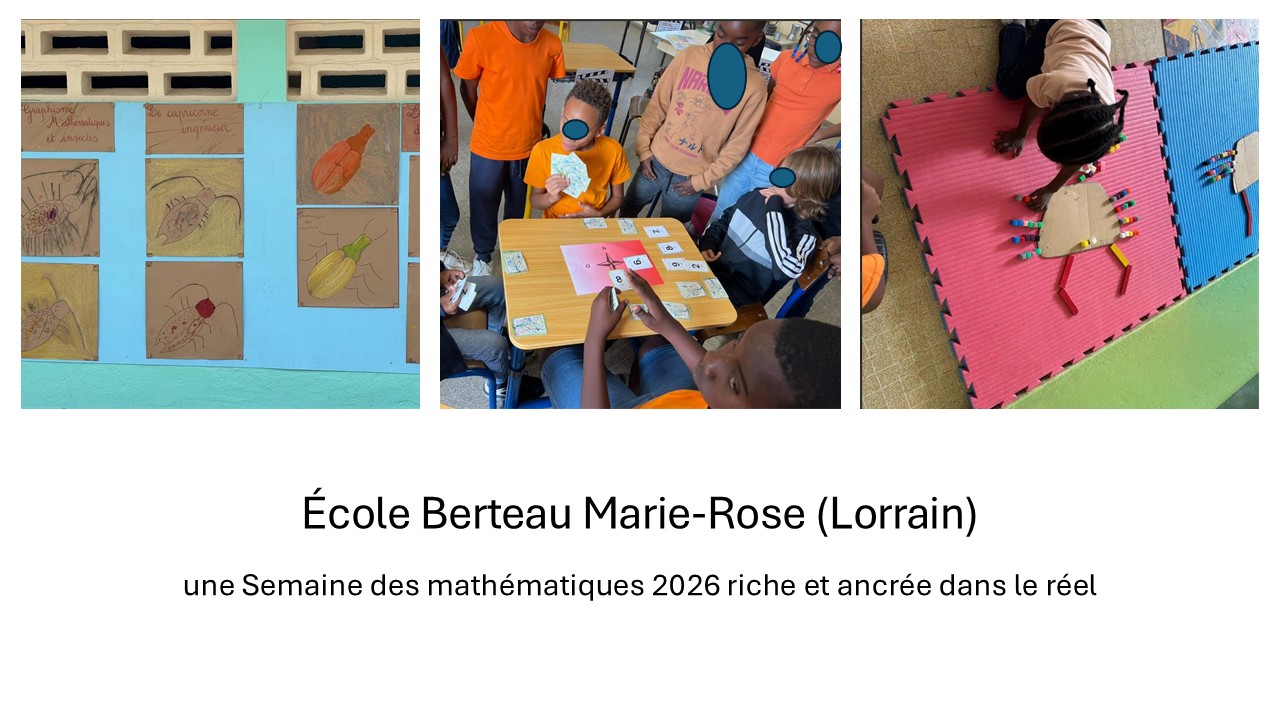 Les équipes pédagogiques de l’école Berteau Marie-Rose sont chaleureusement remerciées pour leur engagement et la qualité des actions proposées dans le cadre de cette Semaine des mathématiques 2026.
